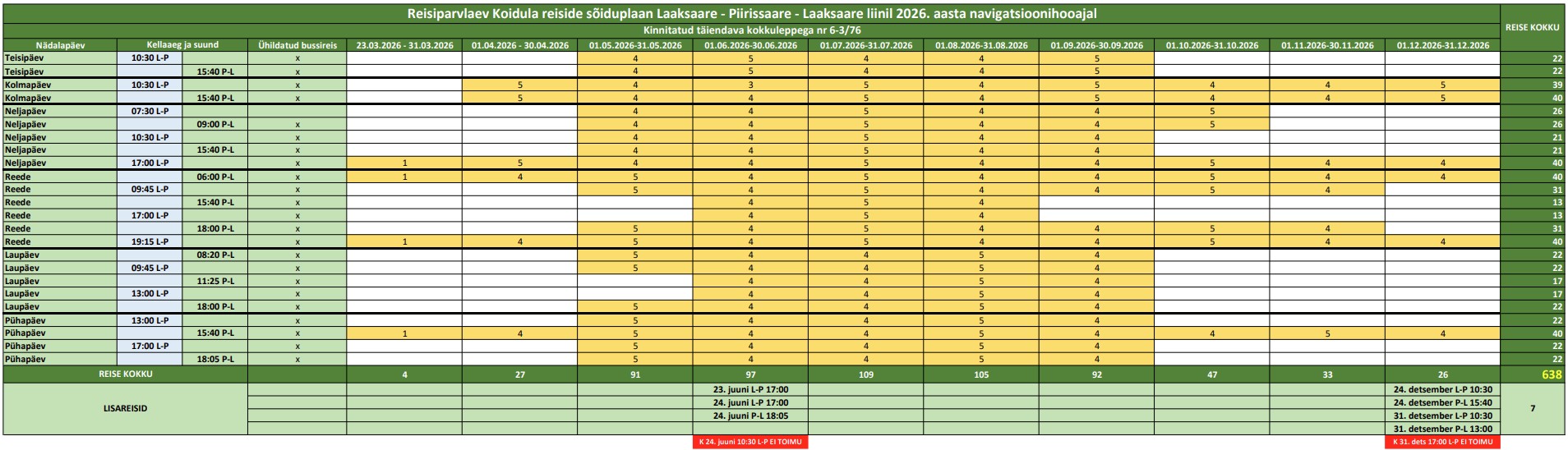 - Navigatsioonihooajal teenindab liini parvlaev Koidula ning talvisel perioodil hõljuk.