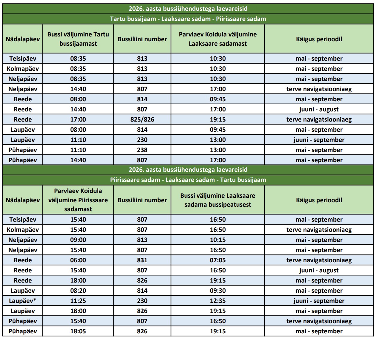 - Tartumaa Ühistranspordikeskuse ülesanne on korraldada ühistranspordiühendus Laaksaare sadama ja Piirissaare vahel.