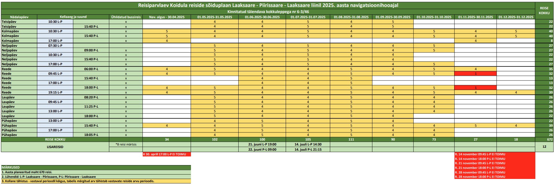 - Navigatsioonihooajal teenindab liini parvlaev Koidula ning talvisel perioodil hõljuk.