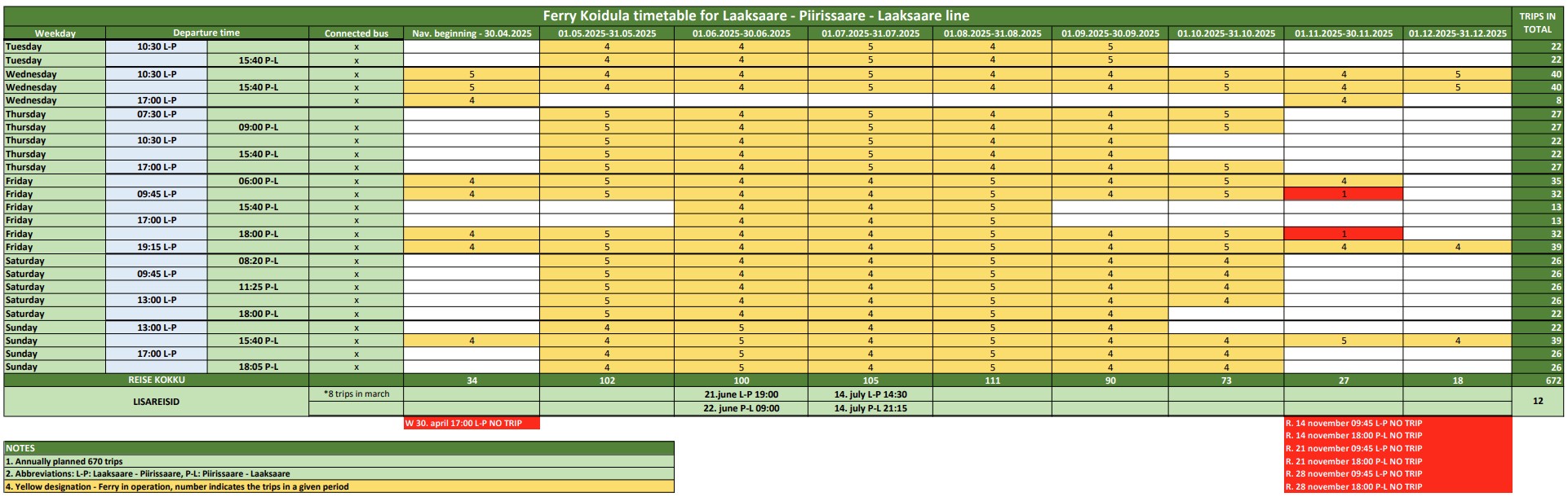 - Vairākiem reisiem piedāvājam iespēju uz prāmja atiešanas laiku atbraukt ar bezmaksas apriņķa autobusu no Tartu uz Lāksāres ostu.